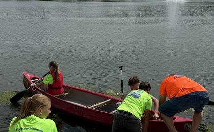 Der Triathlon, bestehend aus den Disziplinen Schwimmen, Kanufahren und Laufen, forderte von allen Teilnehmenden sowohl Ausdauer als auch Teamgeist.